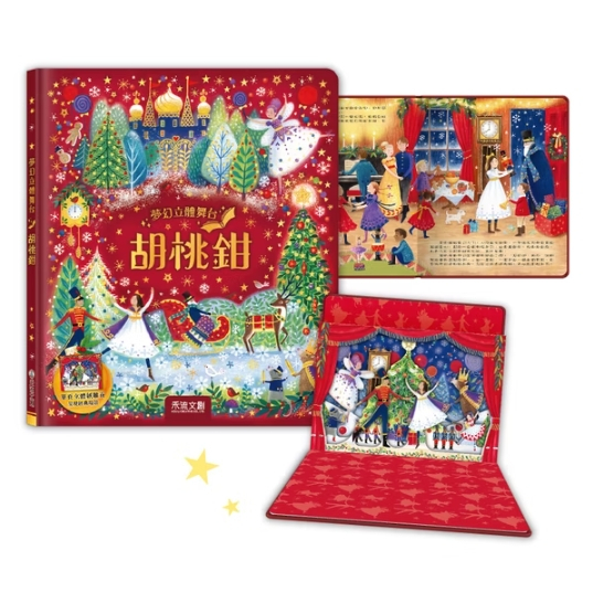 從午夜鐘聲響起的那刻起,孩子能跟著克拉拉與胡桃鉗穿越雪國、糖果國與魔法冒險,用故事音檔陪伴每一個充滿想像力的睡前時光! 攤開夢幻舞台的瞬間,讓胡桃鉗的奇幻夜晚在孩子眼前盛大展開! 「芭蕾舞、白雪、甜點、精靈、胡桃鉗、夢幻國度」 如果你被這之中的某個詞觸動了, 那你一定要翻開這本書! ◆ 改編自經典奇幻芭蕾舞劇《胡桃鉗》◆ ◆ 立體紙雕頁 × 故事音檔——有聲繪本,床邊故事首選 ◆ ◆ 攤開夢幻立體舞台,展開一段浪漫、奇幻、甜美的邂逅 ◆ 平安夜, 克拉拉收到一個胡桃鉗木偶當作聖誕禮物。 午夜鐘聲響起,胡桃鉗動了起來, 不可思議的事情發生了, 奇幻的夜晚就此展開…… 以精緻插圖重現柴可夫斯基經典芭蕾舞劇《胡桃鉗》的魔幻故事。 細膩描繪甜點與糖果們的夢幻盛會, 邀你一起沉浸在舞蹈與想像交織的華麗饗宴中! ◆歷久彌新的經典故事《胡桃鉗》,精美繪本帶你重回夢幻世界 19世紀末,俄國作曲家柴可夫斯基受作家霍夫曼的《胡桃鉗與鼠王》啟發,寫下家喻戶曉的芭蕾舞劇《胡桃鉗》。奇幻的故事背景、真人化的胡桃鉗娃娃、與老鼠的戰爭、華麗的舞會讓這齣劇成了聖誕節前後最受歡迎的演出節目。本書以精美的插圖和優美的文字,再現經典故事。快和克拉拉與胡桃鉗前往奇幻的甜點國度,一起度過特別的夜晚! ◆華麗立體紙雕頁,經典劇作場面躍然紙上 書內附上一頁精緻的立體紙雕,展現克拉拉與胡桃鉗王子共舞的場面。繪圖細緻、色彩豐富,將充滿想像力的文字描繪的夢幻畫面具體呈現在眼前。適合擺在桌上、床頭櫃,成為生活中美麗的裝飾。 ◆配備注音,孩童閱讀好輕鬆 本書內文附注音,不只適合親子共讀,孩童也可自行享受閱讀的樂趣。 ◆QR Code一掃,睡前故事好好聽 一翻開書本版權頁就能看到QR Code,掃一下即可聆聽故事音檔。睡前及休息時光隨手一放,就能悠閒地聆聽美妙的故事。 規格說明 ISBN:9786267689721 頁數:24頁 注音:有 開數:21.6*25.6*1 cm 重量:320 g 適讀年齡:3歲以上