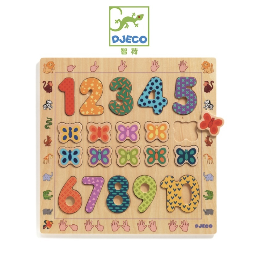 【內容物】1個底板、10個數字拼件、10個蝴蝶拼件