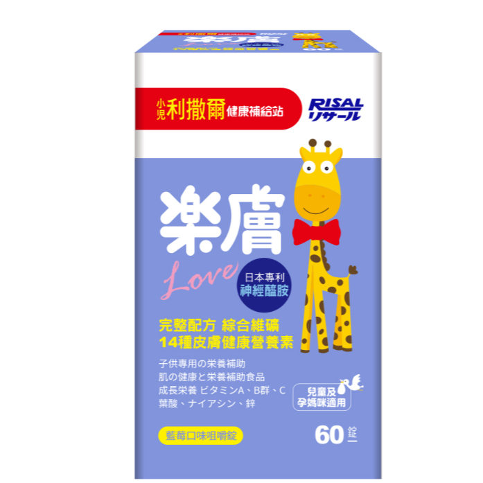 商品特色 添加日本專利玄米萃取物(含神經醯胺) 添加14種綜合維生素與礦物質,營養補給、調整體質 專為成長兒童設計配方,溫和保護,維持健康 藍莓口味咀嚼錠,無添加人工色素、香料及防腐劑 銷售重點 小兒利撒爾樂膚添加日本專利玄米萃取物,含神經醯胺及14種綜合維生素礦物質,提升天然屏障,維生素A、C、E,幫助維持肌膚及黏膜健康。