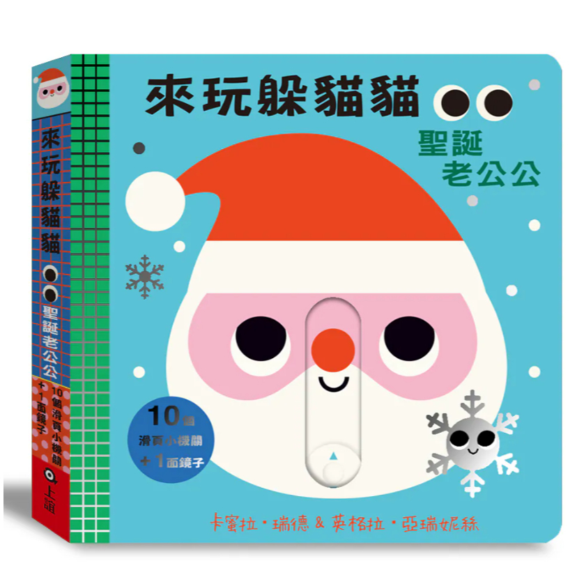 全世界寶寶最愛的遊戲——PEEKABOO又來囉! 榮獲多項圖畫書獎入選肯定,在聖誕節前夕要給寶寶最棒的聖誕驚喜! 誰在玩躲貓貓呀?手指伸進洞裡推一推,哇!是聖誕樹! 誰在玩躲貓貓呀?小手抓著凹槽拉一拉,哇!是聖誕老公公! 寶寶在推拉之中,可以說一說誰不見了,誰出現了? 透過操作遊戲感受聖誕節的溫馨氣氛, 最後再把小鏡子拉開,看看是誰在玩躲貓貓呀? 躲貓貓跨越了語言和文化的隔閡,是全世界寶寶都玩不膩的遊戲。寶寶喜歡「不見了、又找到了」的驚奇和愉悅感,並且在反覆的遊戲過程中感到樂此不疲。這本《來玩躲貓貓 聖誕老公公》以寶寶最愛的躲貓貓為主題,設計了10個精美的躲貓貓機關和1面小鏡子,系列入選英國多項圖畫書獎,甫推出即備受肯定。 寶寶在閱讀與操作的過程中,需要動動小手找尋躲藏的聖誕節相關事物,不僅能滿足好奇和探索的需求、增加互動與參與感,還可以練習手眼協調和精細動作,學習控制操作的力道、方向。最後的小鏡子對寶寶更是具有莫大的魅力!他們在發展自我覺察的能力時,會開始對鏡中所看到的東西感到好奇,想要伸手去摸或是看著鏡中的自己發笑,隨著拉頁一下出現自己的臉,是給寶寶的最大驚喜,原來自己正是這場有趣躲貓貓遊戲的壓軸主角! 爸爸媽媽可以隨著寶寶推拉操作,幫助他學習指物命名,在遊戲中認識和聖誕節相關人事物,也可以藉機跟孩子對著鏡子玩躲貓貓的遊戲,幫助他建立自我概念。這是一本可以反覆操作的遊戲書,一定會讓愛玩躲貓貓的小寶寶愛不釋手! ※書籍特色: 1. 硬頁堅固:結構札實的硬頁書,適合寶寶反覆翻閱不易破。 2. 機關滑順:互動機關好滑又好拉,給予寶寶大大的成就感,增加閱讀的自主性。 3. 色彩鮮明:書中圖案的輪廓簡單、色彩明亮,吸引寶寶的目光。 4. 語句重複:反覆出現的問句,除了鼓勵寶寶動動手指找答案,也能幫助孩子掌握閱讀的節奏。