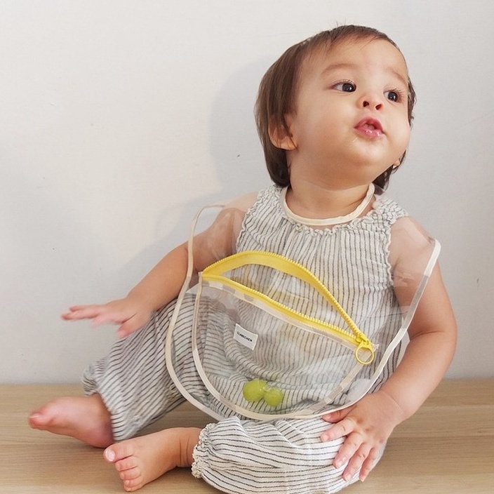 外出用餐, 擔心寶貝的餐桌不乾淨嗎? 新款結合了點心圍兜與餐墊圍裙的設計, 讓媽咪帶寶寶外出用餐不怕餐桌不乾淨, 戴上點心圍兜再套上餐墊, 隔離細菌, 也不怕寶寶把餐桌弄的一團亂. 用餐完畢後, 連同掉落在餐桌墊上的通通包起來, 輕鬆收拾. 表面上看起來是個時髦的圍兜圍裙, 實際上更具備防水與耐髒的機能。餐墊背面有鬆緊帶可套住餐桌椅. 不怕孩子扭來扭去. 對於經常外出用餐的家庭, 點心圍兜是媽咪寶寶絕佳的神器. 透明的用料, 適合各種穿搭場合。 面料: 100% TPU 熱塑性聚氨酯 日本YKK 拉鍊 綠色防水布: 100%尼龍 one size 37公分 x 25.5公分 適用於6個月+ 保養方式: 洗滌說明:建議手洗 (水溫30度以下) 可手洗、可晾乾、不可漂白、不可熨燙、不可乾洗 深色與淺色衣物請分開洗滌 產地/製造方式 台灣製造 Made in Taiwan